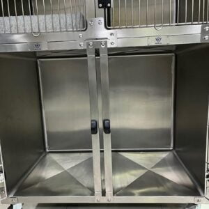 Οι πόρτες των κλουβιών ανοίγουν και κλείνουν εύκολα με το ένα χέρι, επιτρέποντας έτσι στο προσωπικό της κλινικής να τις ανοιγοκλείνει κρατώντας αγκαλιά το κατοικίδιο που πρόκειται να νοσηλευτεί. Οι ράβδοι της πόρτας έχουν διάμετρο 6 και 8 cm, παρέχοντας απόλυτη ασφάλεια στα νοσηλευόμενα ζώα.