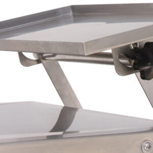 Ανοξείδωτο τραπέζι διαστάσεων 120 x 60 εκατοστά και δυνατότητα ανύψωσης από 52 έως 100 εκατοστά.