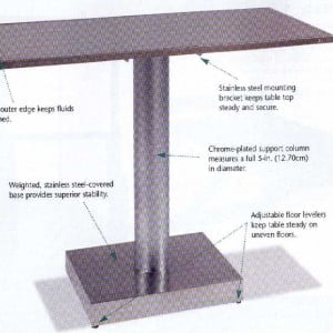 Η επιφάνεια του τραπεζιού ενώνεται με τη βάση με μια χρωμιωμένη κολώνα διαμέτρου 13 εκατοστών περίπου.